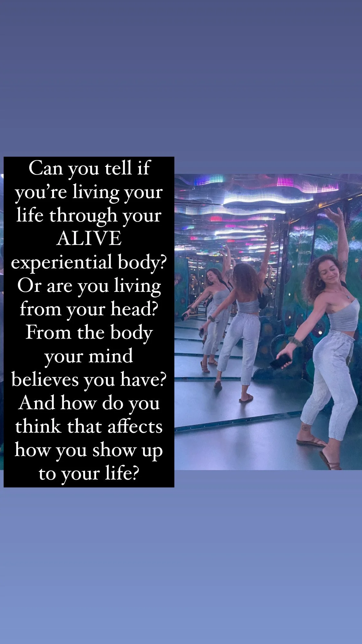 Through embodiment practices, expression liberation, ritual, and spiritual practice, I guide you back to the wisdom of your body, the power of your voice, and the truth of your soul.